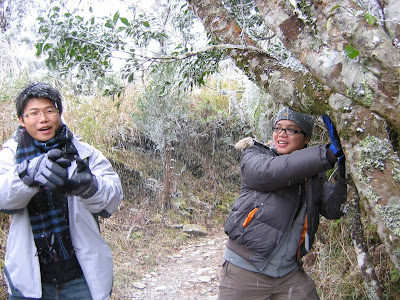 說是銀色世界也太誇張了點,不過白霜爬滿樹梢的景象,不枉我們早起,還冒著冷的要命的天氣來這裡。